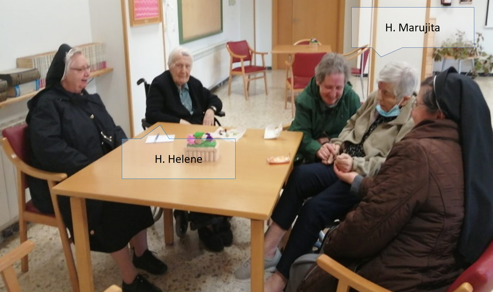En Burgos estuvimos también muy contentas con nuestras hermanas Eufemia, Carmen, Antonia, Lourdes, María Rosa y la hermana mayor, Clara Helena. Muchos saludos envían las hermanas y oraciones; porque con todas se sienten muy vinculadas y felices de ser Hermanas del Niño Jesús Pobre.